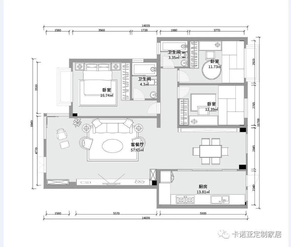 本案戶型考慮到采光局限,
