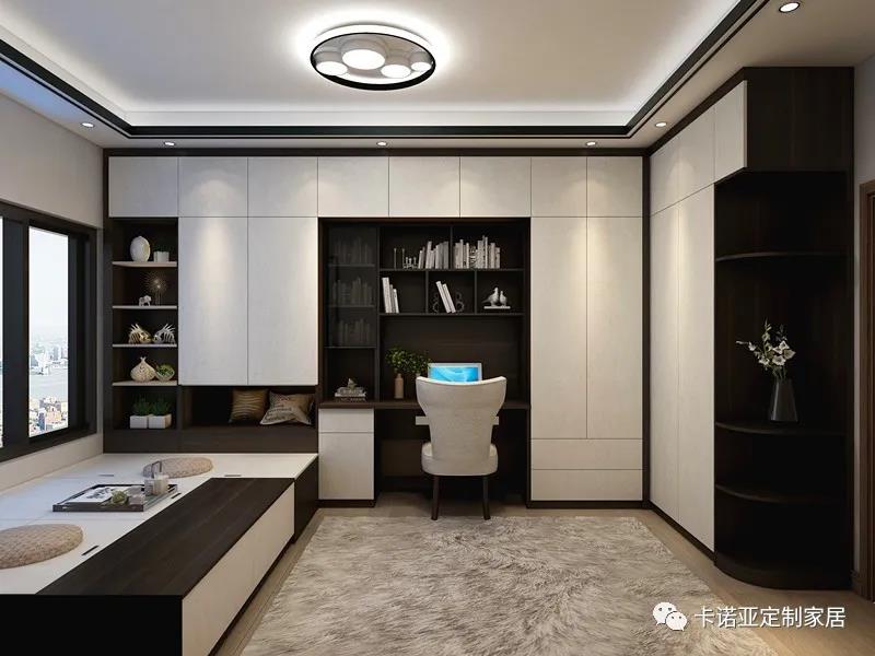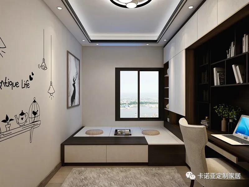 榻榻米、衣柜、書柜、書桌一體化設計,