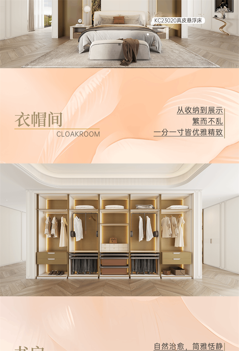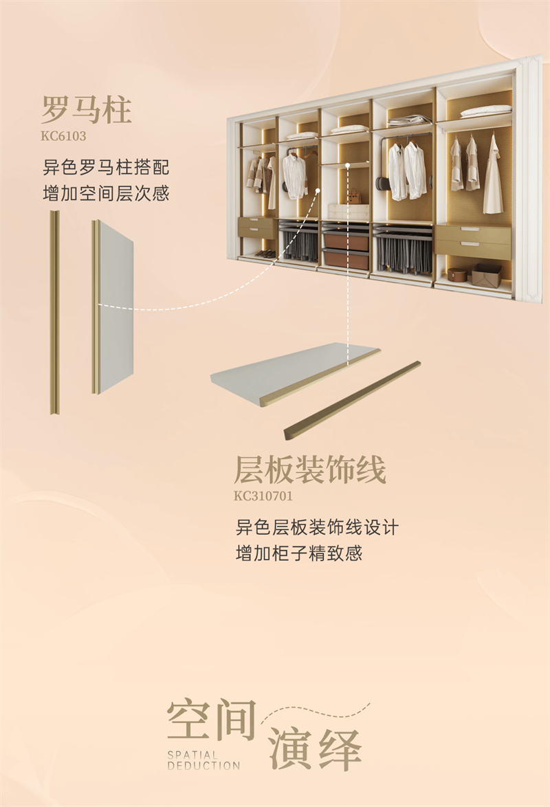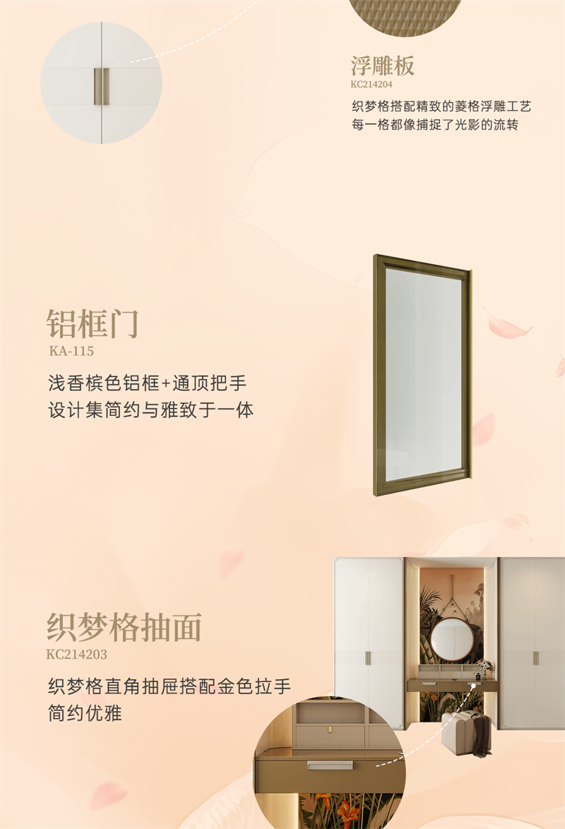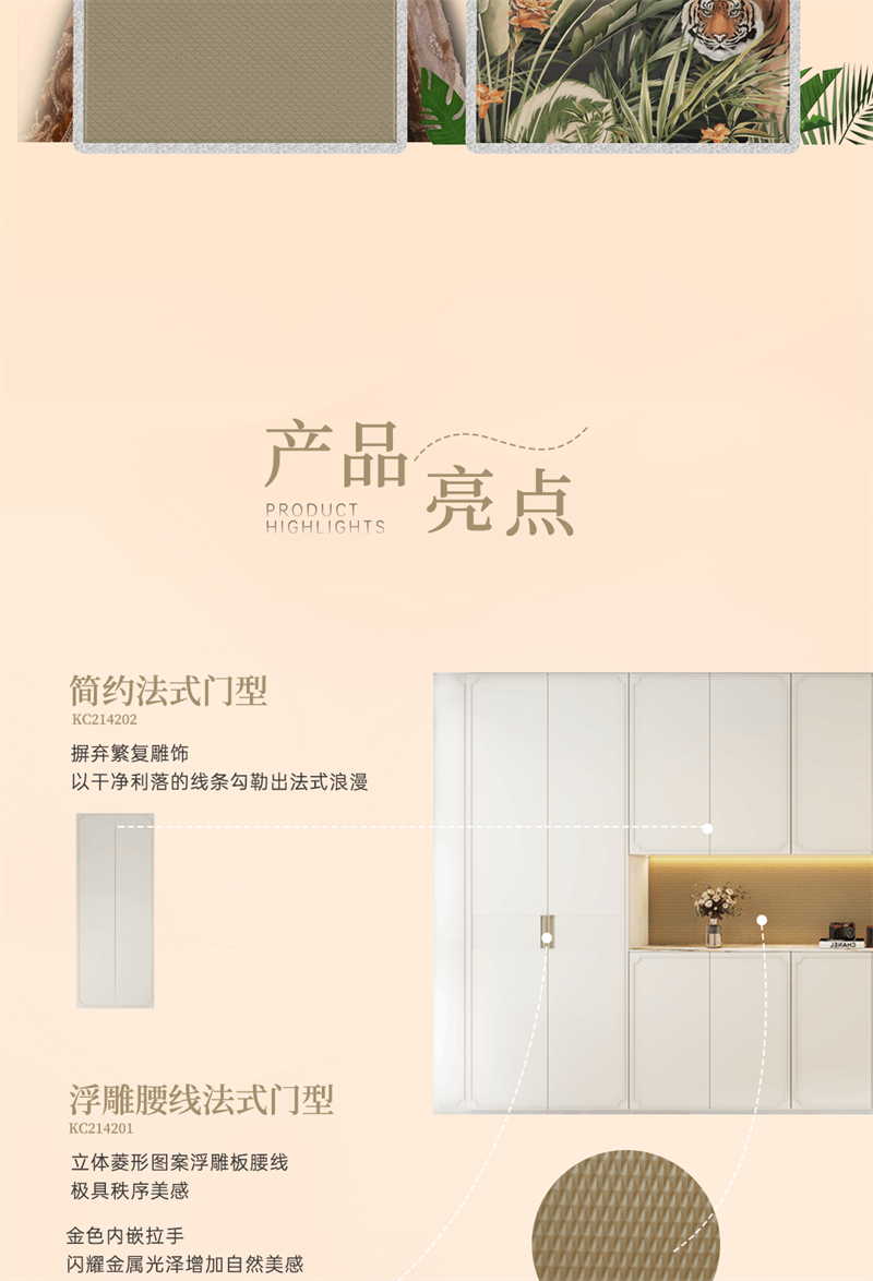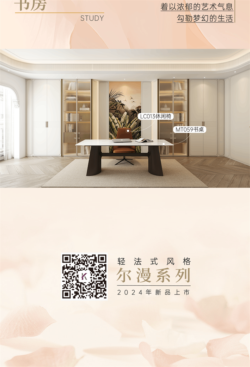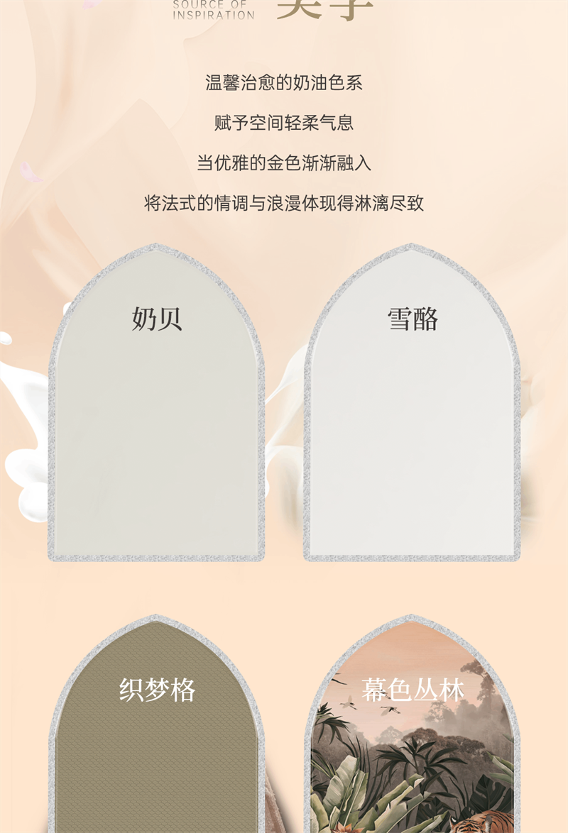 系列產品整體以奶油白和金色元素為空間基調,將法式的氣質融入現代空間,以精致細節的融入,讓家成為容納更多想象的美好生活殿堂,讓“美”成為一種生活態度。