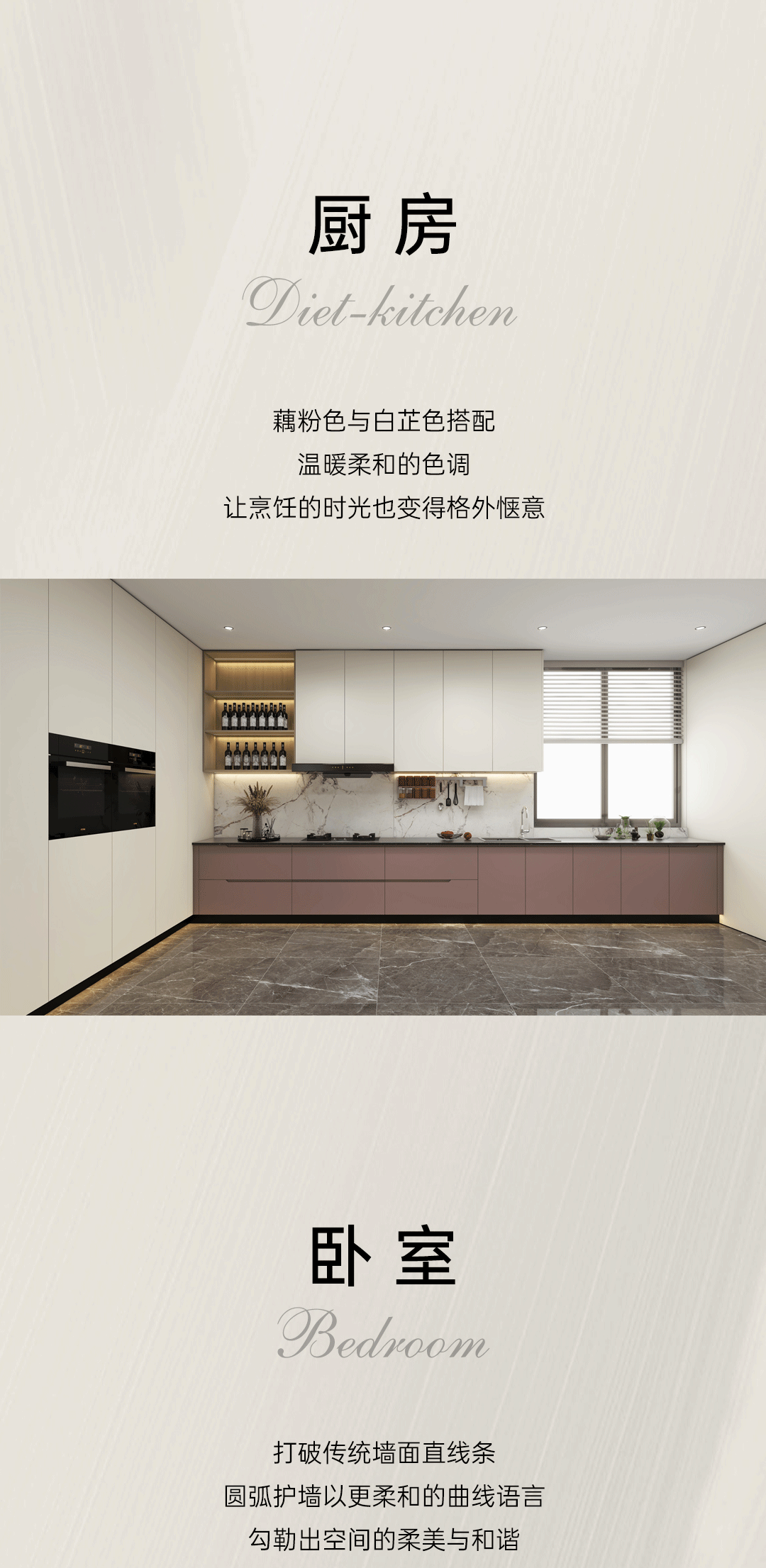 造型:幾何拼接造型與柔和弧線的結(jié)合,在設(shè)計中創(chuàng)造出一種現(xiàn)代溫馨的氛圍。