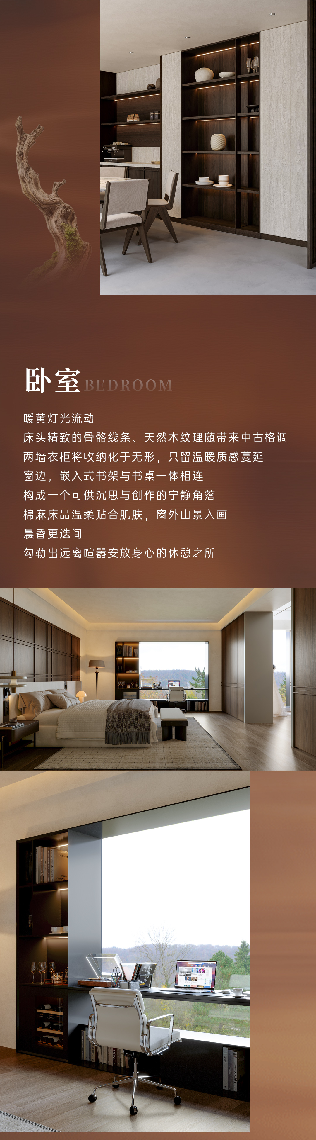 在離塵不離城的靜雅別院,時間沉淀為空間的詩,以復古為魂,簡約為形,木皮為質,融合古典優雅與現代功能美學,為向往自然與松弛生活的居者,打造一座兼具中古靈魂與現代功能的理想棲居。