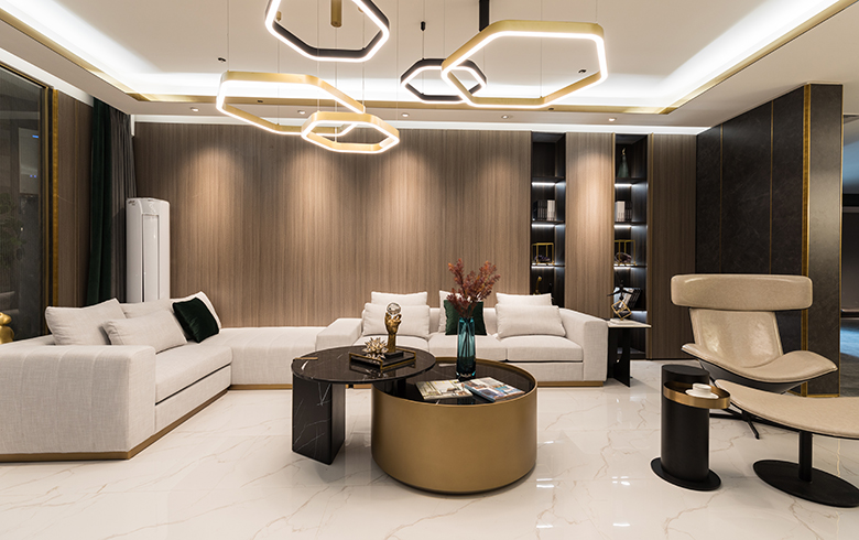門廳護墻系統徜徉在經典與現代之間,行走在時尚的天平上,平衡著功能性與時尚美感,它是摩登而優雅的,將這種自然而富有美感的設計與傳統本土情懷結合,金屬黃銅線裝飾與木質天然紋理渾然一體,彰顯著華貴的生活氣息,低調而奢華。