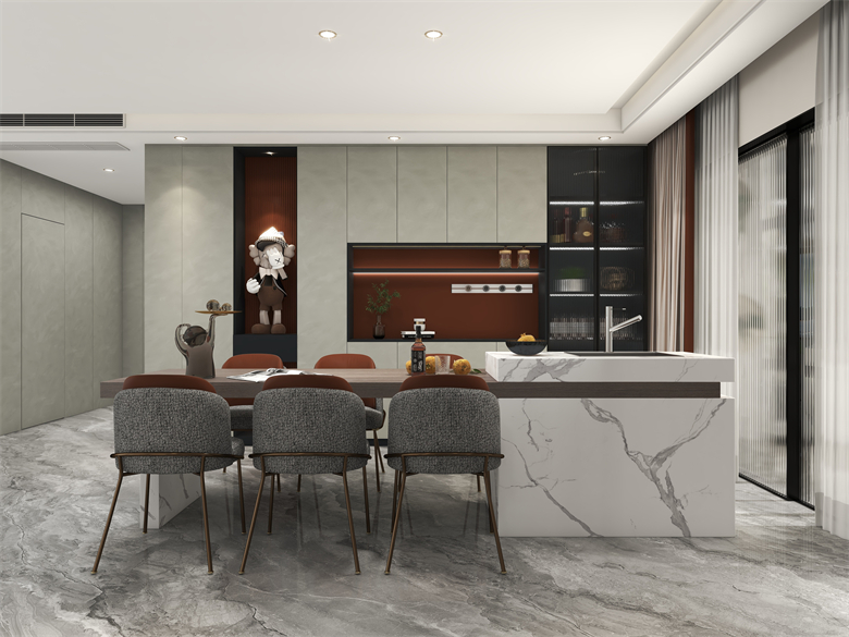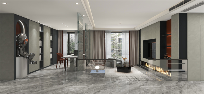 對于這套戶型的定義是實用的基礎上滿足業主時尚又年輕化的需求。整體空間從入戶到客餐廳都有一套強有力的流線進行引領。比如燈光的運用,材質的拼接和反光的處理都更好的表現了空間的質感和通透性。 空間的整體動線為業主更好的規劃了日常生活的走向,根據對業主年輕化和職業的分析,在設計中添加了手辦裝飾以及對職業需求的一些理解。