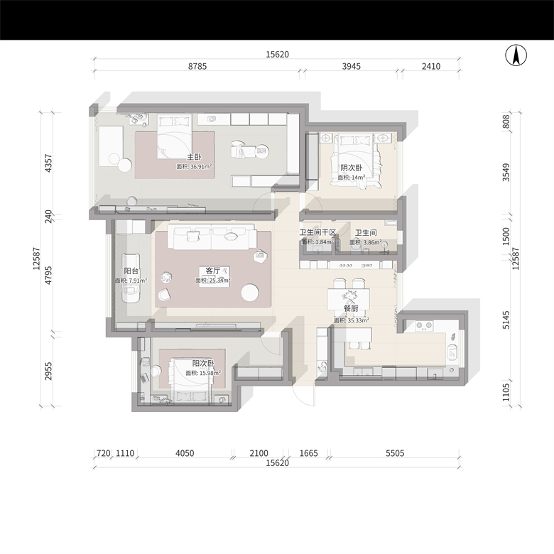 嚴謹的秩序和功能設置之下,人在空間中也擁有更大的自由度。尊重每一位家庭成員的生活習慣與需求,關心每個人的情緒與狀態,去除多余的裝飾,讓空間更加簡約舒適,才是理想的家。設計理念:大繁至簡,“至繁”歸于“至簡”,至簡源于至繁,以人為本,注重實用,崇尚簡潔質樸,回歸自然,直指本心。整家視界 全案生活|第六屆卡諾亞整家設計精英聯賽