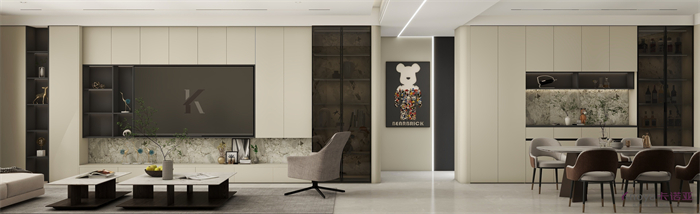 作品簡介:家人的幸福生活,從一個溫馨、舒適的環境開始。我的作品向大家展示的是一個輕松、浪漫,充滿簡約風格的設計。以淡雅的米色為主調,配上寧靜的暖色系護墻板,讓空間呈現出一種寧靜、致雅的氣氛。淺灰色地磚和暖色系家具的搭配,使整個家居都呈現出低調而又不失品味的質感。石紋與純色的搭配,石材、金屬、燈光、軟裝的點綴,主次分明的設計手法,從點到面讓整個空間質感拉滿。