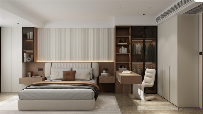 作品簡介:色彩上以自然明亮的色調為主要選擇,如米色、原木色、米白色、灰色以及米黃色等。在材料的選擇上,自然元素如木材、銅、純棉以及手工編織的織物是常見的材料。整體風格上旨在,混合紋理和面料能夠增強房間的質感和視覺效果。使這個空間呈現出來多樣化的,包容性強的空間氛圍。在精致低奢的前提下代入一些生活美學的魅力。簡約、低調且時尚是其特點。